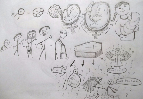 conditioning/brainwashing, reinforcing that we are the body/mind.